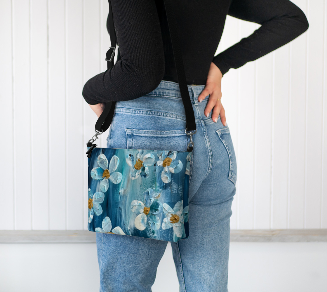 Small yet mighty! The vegan leather crossbody purse keeps all your essentials close at hand. Made from textured vegan pebble leather with adjustable shoulder strap and metal hardware, crossbody purses are digitally printed on-demand with resilient and vibrant UV inks.